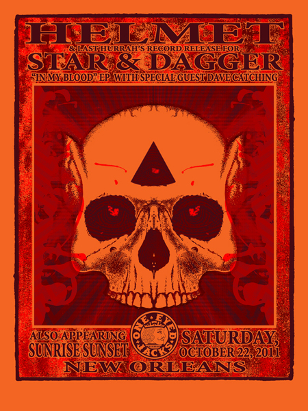 Silkscreen poster designed by Lindsey Kuhn for his 20th anniversary party at Emo's East on March 13 for the South by Southwest pre-event featuring High on Fire, Star & Dagger, Venomous Maximus, and Eagle Claw. A very limited amount of skate board decks were produced for the event featuring Kuhn's design. |